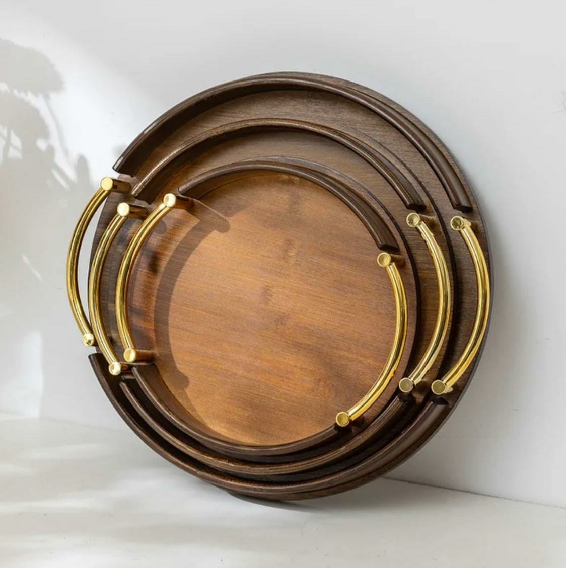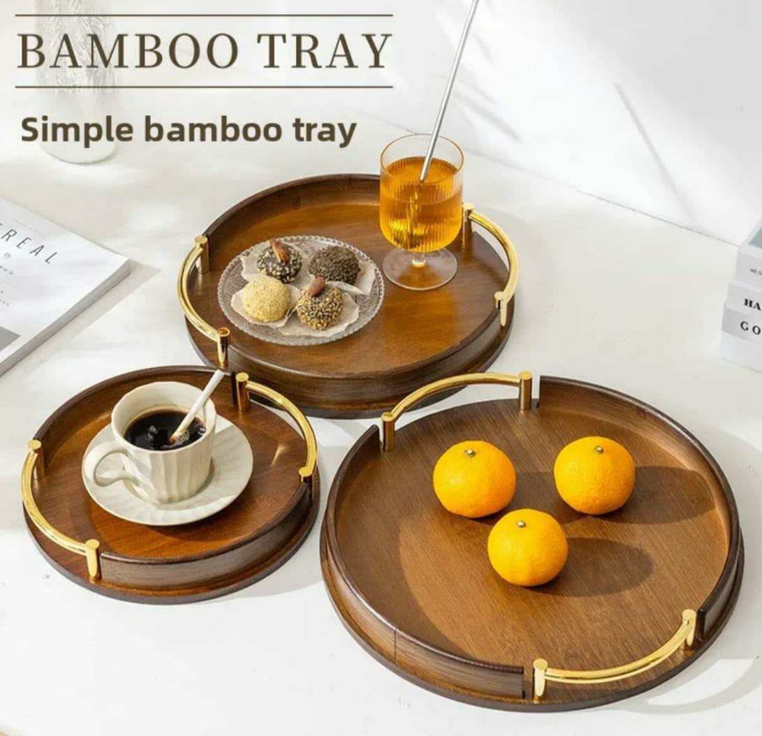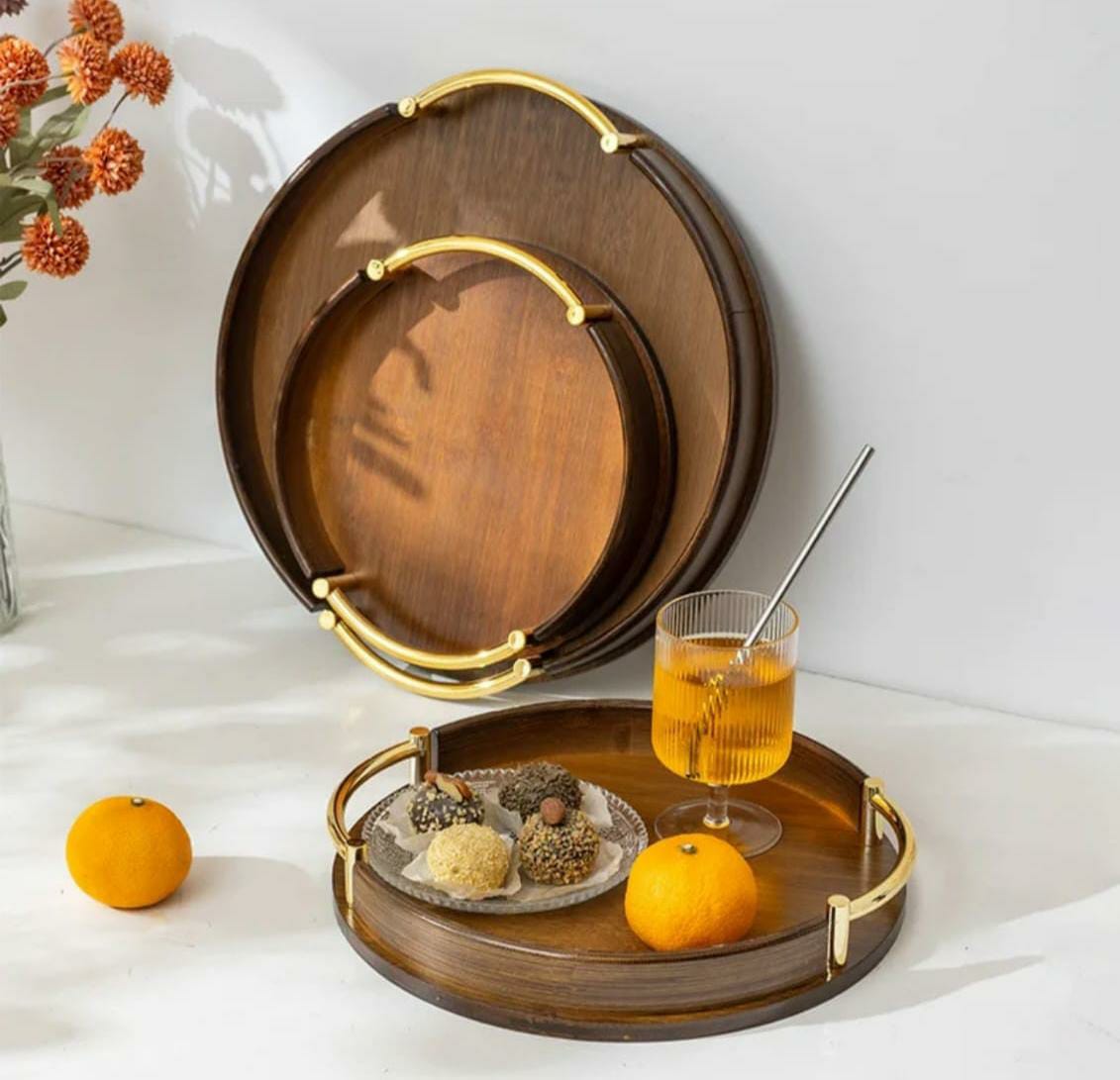 Round Bamboo Wooden Serving trays with Bamboo Handles